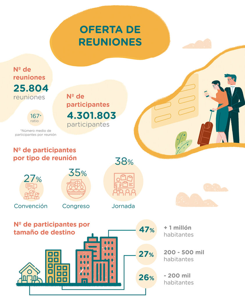 El año 2018, se celebraron un total de 25.804 reuniones, un 3,4% más respecto al año anterior. Los asistentes a dichas reuniones superaron los 4 millones y el número medio de participantes por reunión aumentó en un 4,1 % en comparación con 2017.